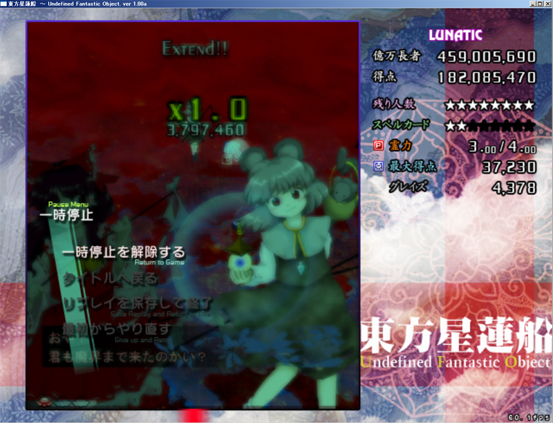 5面中ボスナズーリン残機MAXも達成して